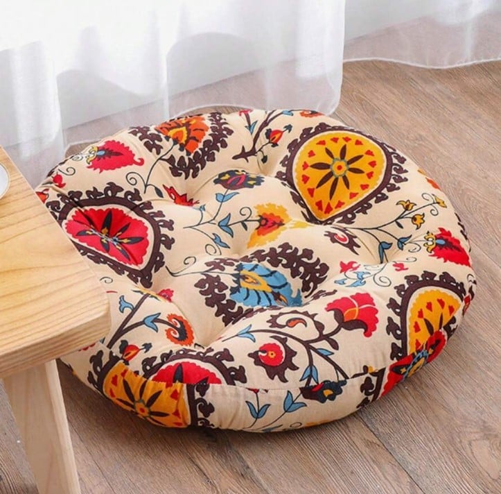 وسادة دائرية ناعمة الملمس ومريحة للجلوس، تأتي بمقاسات مثالية تبلغ 45 × 45 سنتيمترًا، مما يجعلها مناسبة للاستخدام في مختلف الأماكن والأوقات. تتميز هذه الوسادة بغطاء ناعم يمنح اليدين الشعور بالراحة عند ملامسته، فهي مصنوعة من أجود أنواع القماش القطني المتين والمريح.