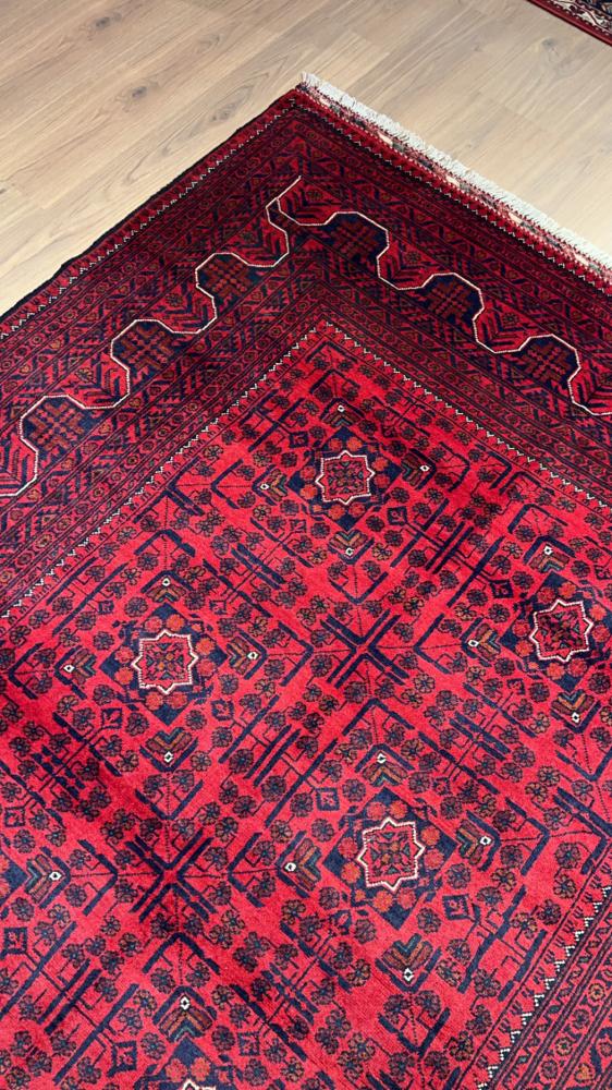تتميز هذه السجادة بلونها الأحمر الغني الذي يرمز إلى الفخامة والقوة، مزدانة بنقوش هندسية متقنة تعكس براعة الحرفيين. تم دمج تفاصيل سوداء وزخارف دقيقة تضيف عمقًا ورونقًا خاصًا للتصميم، مما يجعلها مناسبة للمجالس الفاخرة، غرف المعيشة، أو حتى المكاتب ذات الطابع الراقي.